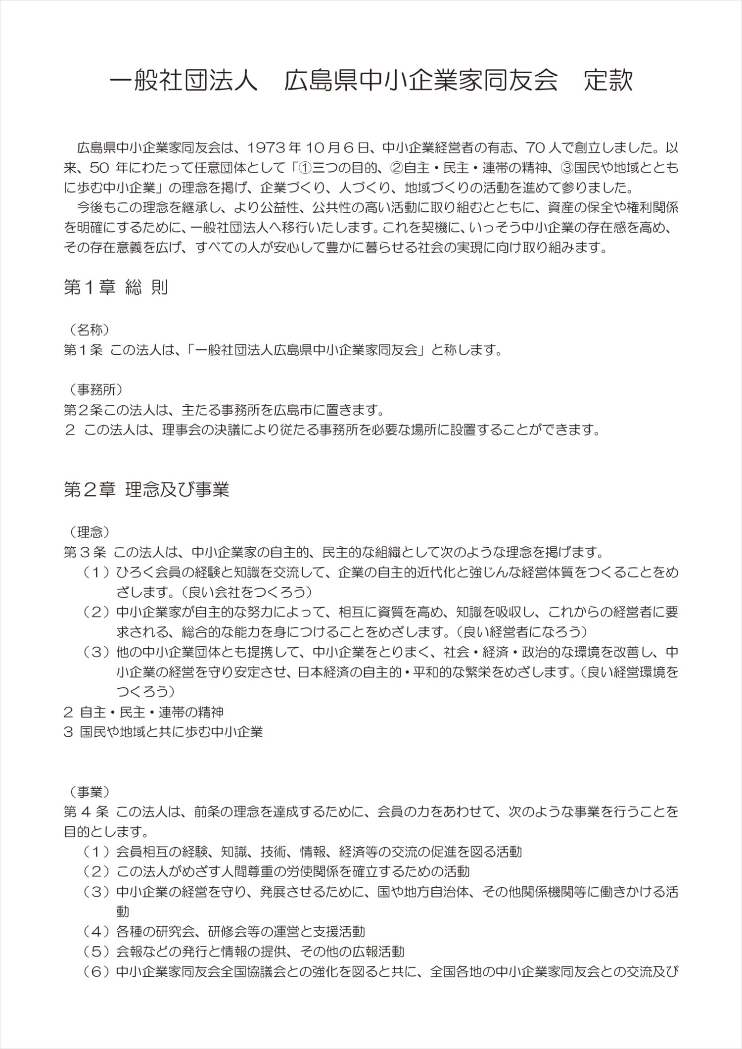 一般社団法人 広島県中小企業家同友会 定款(PDFファイル:203KB)