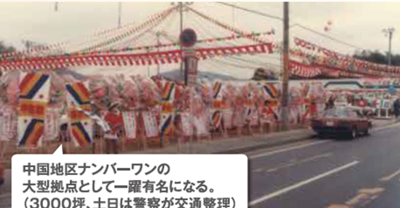 創業は1971年。自動車好きだった父の二村義春が整備会社として創業しました。長い年月の間には資金繰りに困ったこともあったようですが、「苦労は全部忘れた」と話していました。会社の転機になったのは、1984年に他の中古車販売社2社と立ち上げた「カージャンボ広島」だったようです。敷地3,000坪に1,000代の車を揃える中国地区ナンバーワンの大型店で、土日は警察官が交通整理をするほどの来客がありました。当時としては画期的な取り組みだったと思います。その後、それぞれの経営方針の違いから解散を迎えましたが、当時の共同経営者からの紹介でマツダ車のディーラーとして「オートザム安古市」をオープンさせ、新車販売にチャンネルを広げることができたので、挑戦と人の縁は大事だと実感します。