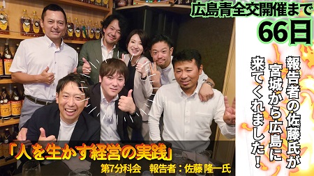 学びを体現する次世代リーダーとして全人格的成長を遂げる学び合いの活動を行う場となるように、先ずは広島同友会青年部が一丸となって取り組む姿勢を見せること。
