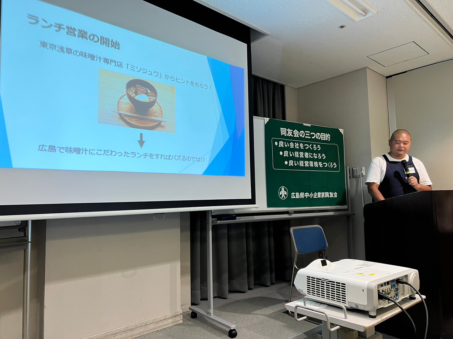 7月例会は,流川の雑居ビルで小料理屋をされている永山さんにコロナ禍でも急成長を遂げたランチ戦略とこれからの展望について報告していただきました。