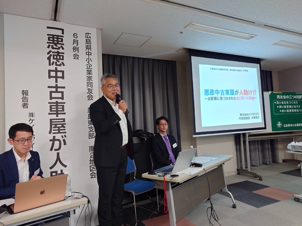 今回の報告者は在庫を持たない車屋(株)ケイスタイルの木梨貴之氏でした