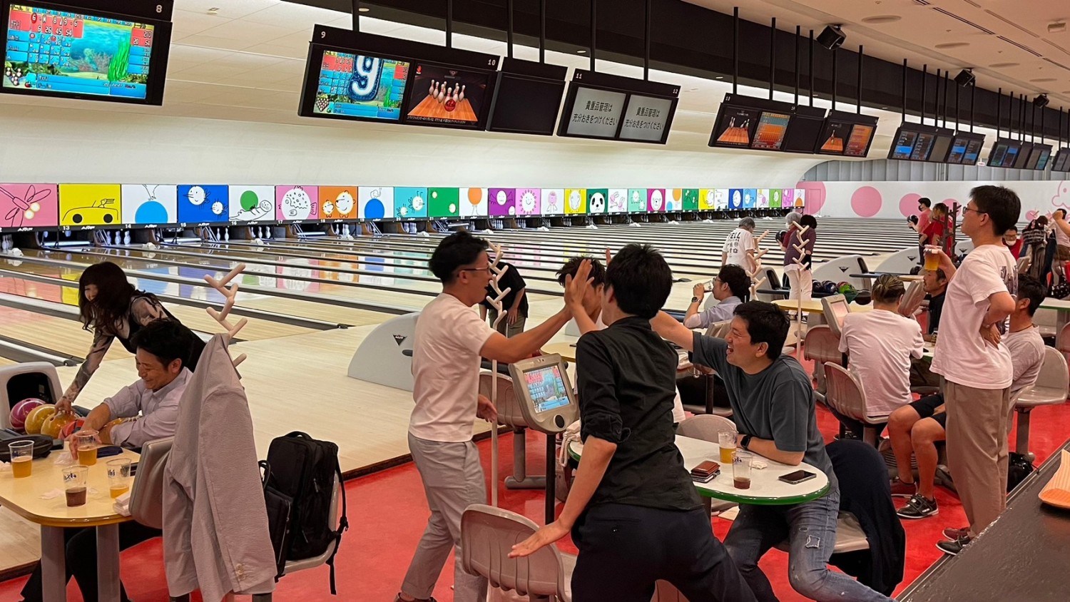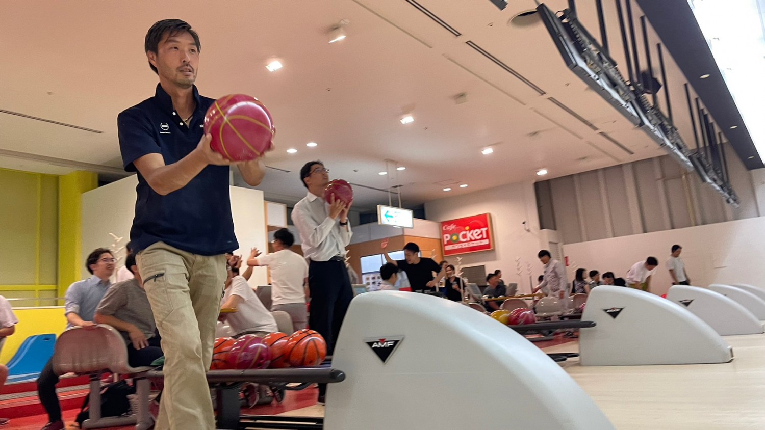 ボウリングは 7 人から 8 人の新会員さんと既存メンバーの混合チームで 2 ゲームのチーム戦が行われました。