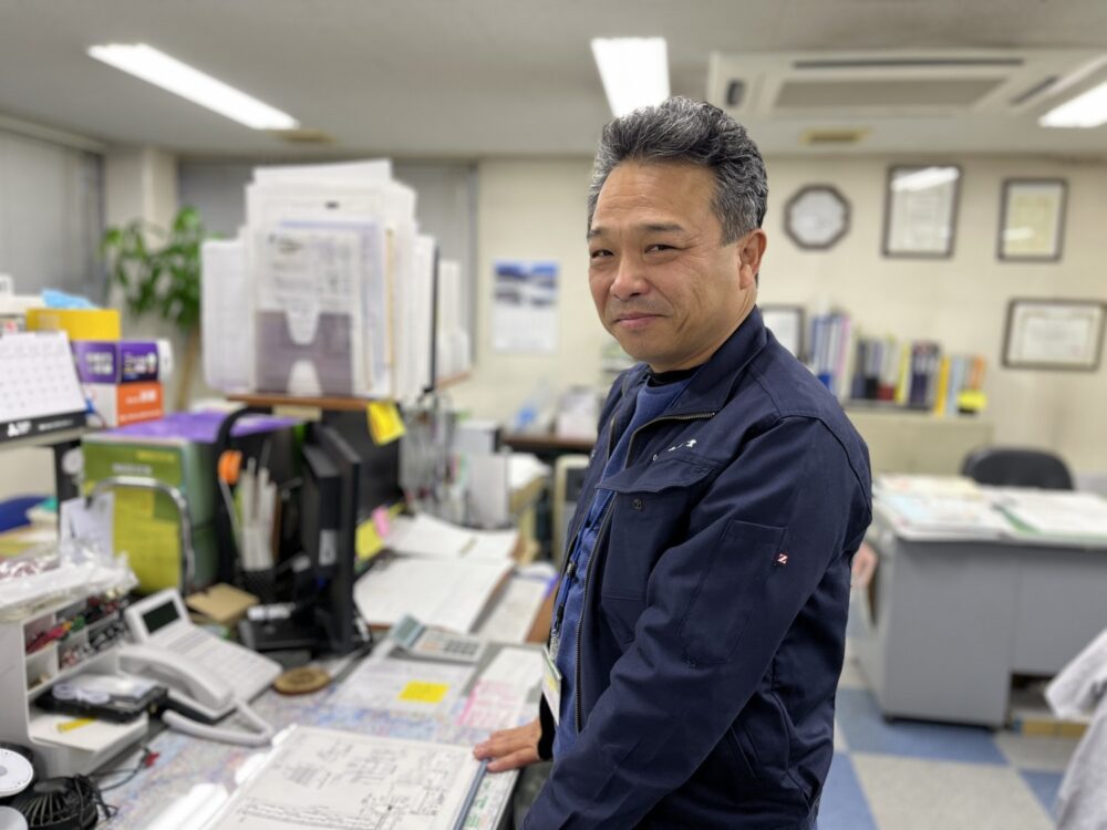 この会社において、桝本隆智氏は取締役専務として営業に当たっておられます。お客様の要望を聞き、その工場の床の使われ方を確認し、見積もりを提出し、依頼先の決済を待つ。ゴーサインが出たら、職人と共に現場に入り、直接職人に指示をする。土曜も日曜もなく、平日の休みにも、お客様からの電話が鳴る。