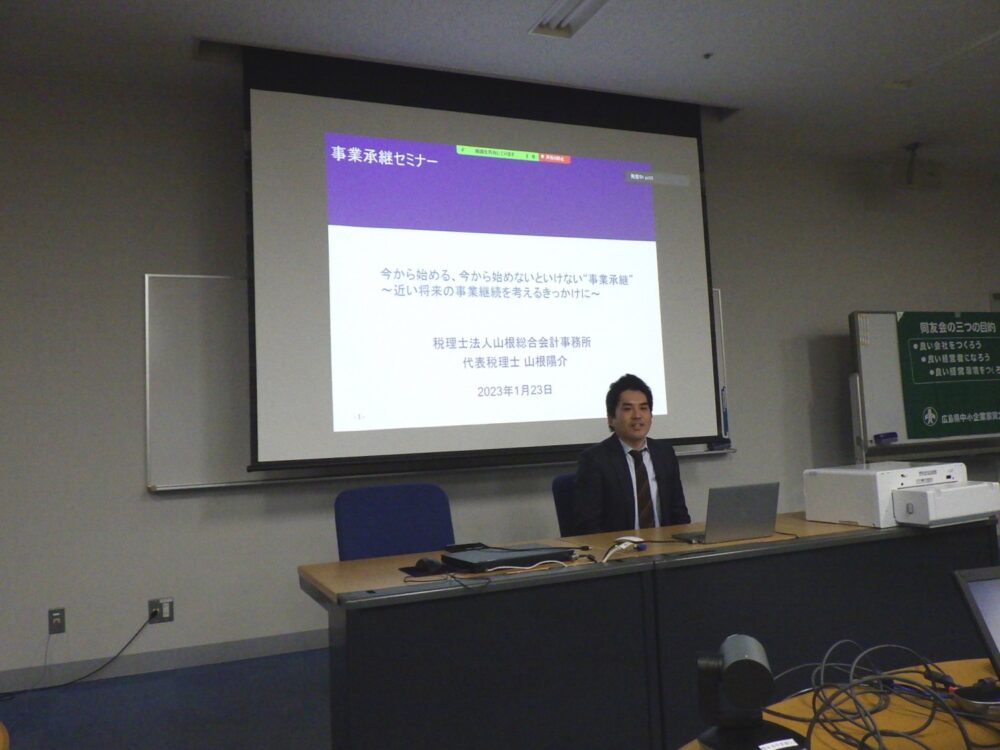 外部講師の山根先生のお話もいろんなパターンの事業承継のお話を分かりやすく解説され勉強になりました。最後に事業承継は5年~10年期間をかけて行えば負担が軽くなりスムーズに承継が出来るとの事でした。