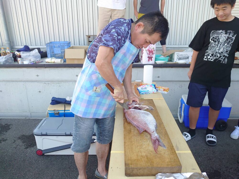 各自率先して準備を行う姿はご家庭での奥様の教育によるものだと感心しながらも着々と準備は進み、BBQでお肉を堪能する方や焼きマシュマロを堪能される方と楽しみ方もそれぞれ。ひとしきりBBQを楽しんだ後は、待ちに待った『魚の解体ショー!』なんてものも企画されていたりと、充実した内容に参加者一同大満足の内容でした。