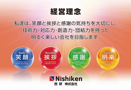 人はドキドキわくわくすることが生きがいだと考えています。わくわくしない人生は面白くありません。そんな思いを経営理念にも掲げています。西研はこれからも明るく楽しい会社をめざします。