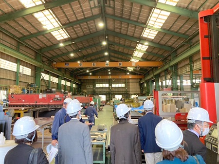 企業見学はコロナ禍により3年ぶりの開催です。マイクロバスに先生5名、経営者4名が乗り、5社を見学。企業の熱心でわかりやすい説明に、たくさんメモを取る先生方の姿が見られました。