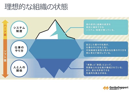 企業変革支援プログラムカテゴリー三「人を生かす経営の実践」で問われているような組織能力を高めるためには何をすべきなのか?それはシステム・制度、仕事のやり方、人と人との関係をバランスよく整える必要があります。