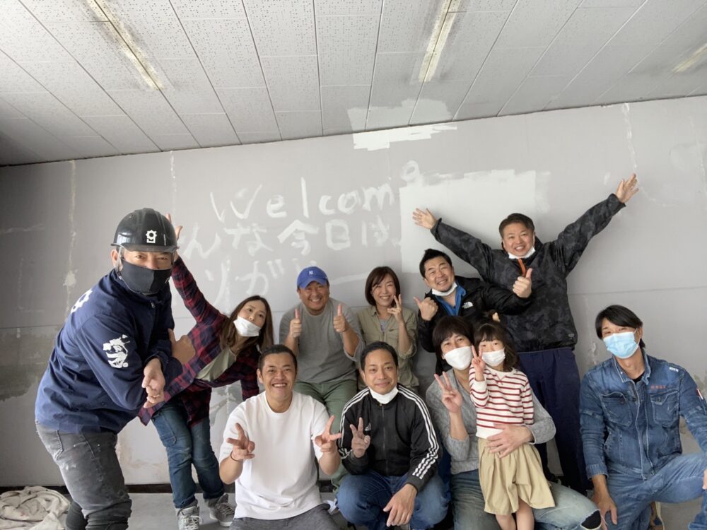店舗の改装にて同友会の仲間(山本周・平井暁・田中雅也・瀬良博美・田久保晋三・金口志織・山根鉄平)が塗装を手伝ってくれました。前日から久しぶりにみんなでに会えるのがめちゃくちゃ楽しみで、当日は久しぶりに会ったけど、昨日会ったみたいな感覚で話がはずみいよいよ塗装。先に養生をしっかりとして、天井・壁・外の看板を手分けして塗っていきました。お昼はピザパーティ。夜の打ち上げ。遅くまで手伝ってもらって感謝です。
