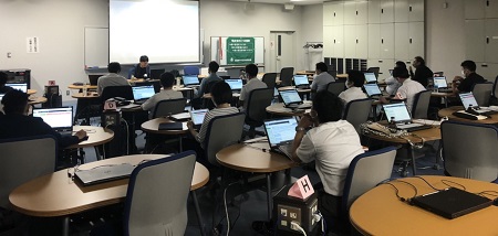 中⑨地区会7月例会は、企業変革支援プログラム活用講座を行いました。講師は東支部の錫木さん、会場となるひとまちプラザのマルチメディア実習室を使い、更にZoom にてオンライン配信をするハイブリッド方式で総勢30 名の参加となりました。