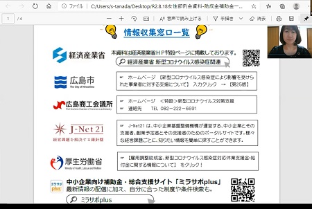 8月現在の公的補助を社会保険労務士法人たんぽぽ会 木山恭子氏に判りやすく資料をまとめてご説明いただきました。業績が上がった企業は少数だと思います。その中、これから持続していくには。変革に必要な費用は。と考えると公的補助が必要だと思います。専門家の皆さんに助言をいただいたり、申請された方へお話を聞いたり活用していただければと思います。