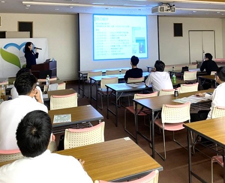 西地区青年部の八月例会は、佐伯区民センターにて報告者に㈱島村製作所の島村さんを迎え、「私の事業承継」をテーマとしてお話して頂きました。依然、コロナ禍中ではありますが、リアル&Zoomで開催し、多くの方にご出席いただき非常に有意義な例会となりました。