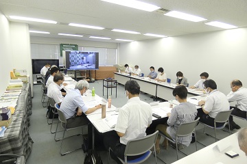 広島同友会は8月28日、恒例の県商工労働局幹部の皆さんとの懇談会を開催しました。この懇談会は、県の幹部の方々に中小企業の実情を伝え、県経済の活性化を共に考えることを目的にしています。17回目となった今回は3密を避けるため、16人の県幹部の皆さんは同友会事務局に集まり、同友会の役員は役割のある方を除きZoomで参加、初めてハイブリット型で行いました。
