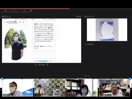 第3部では社会貢献をされた事例の紹介で、マスクの寄付や飲食業関係に向けたテイクアウトのステッカーの無償提供など、日頃お世話になっている方々への感謝の気持ちが込められていました。