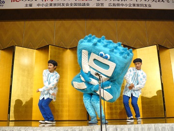 ステージ上では、昨年の広島豪雨災害の被災地から呉氏(呉市)、やっさだるまん(三原市)、ふでりん(熊野町)のゆるキャラが登場。全国からいただいた温かい支援のお礼に、呉氏らによる軽快なダンスパフォーマンスで会場を盛り上げました。