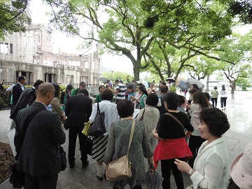 ◆ひろしま平和の祈りコース お昼から降り出した雨の中、平和記念公園内と今春リニューアルオープンした平和記念資料館をボランティアガイドによる解説で巡りました。
