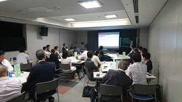 ■日時:5月24日(金) ■会場:合人社ウエンディひと・まちプラザ ■報告者:㈱タニシ企画印刷 田河内伸平 氏、㈲浪漫珈琲 神原真樹 氏、田中化工機工業㈱ 田中充成 氏 ■参加者数:38名