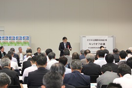 中同協はこれまで、憲章の国会決議や中小企業省や担当大臣の設置など、5つを国に要望してきましたが、その一つ「中小企業の日」が今年7月に設けられることになりました。自民党の中小企業・小規模企業事業者調査会長の竹本直一衆議院議員が「中小企業で働く誇りを国民と共有するために7月20日を『中小企業の日』とし、七月を中小企業振興月間にしたい」と紹介しました。