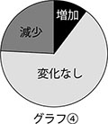 目標と比べて上がった108人(14.0%)、変わらないが397人(51.5%)、減少したが266人(34.5%)。(グラフ③)