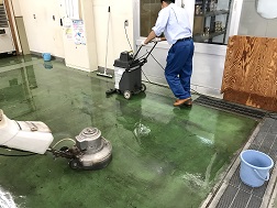 被災直後、水が引いた工場内は、泥で汚れていましたが、㈱ケンビ 唐下社長(同G地区)が洗浄作業に駆けつけ、まず、工場の床が復旧しました。これにより、印刷機械の修理や電気関係の復旧作業へすぐに取りかかることができました。