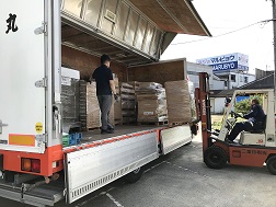 多種大量の資材倉庫の復旧には、在庫商品を一度移動させて倉庫内を清掃する必要がありました。一時的な移動保管先は、㈱オーザック、岡崎社長(同A地区)の計らいで鞆鉄鋼団地内の休業中の工場を確保。運搬は、G地区会長の㈱こんどう電器、近藤社長の紹介で㈱QLサービス、目黒社長(同E地区)が自らハンドルを握って運搬にあたりました。