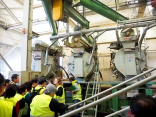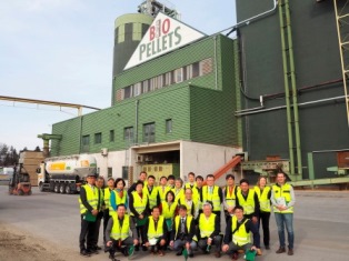大きな製材所の一角がペレット工場になっていました。全社合わせて一三〇〇人の製材所ですから、どんなに大きいか想像できると思います。見渡す限りの貯木場に完成品の山々。毎日出る製材屑の量も半端ではないはずで、その鋸屑から作るホワイトペレットがヨーロッパ各地にタンクローリー車で輸送されています。