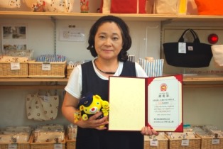 「数ある尾道のえぇもんの中から尾道帆布が選ばれたのは大変光栄です。尾道の伝統産品であった帆布がこれからも発展するよう、頑張ってまいります」と笑顔で話す田口理事長。
