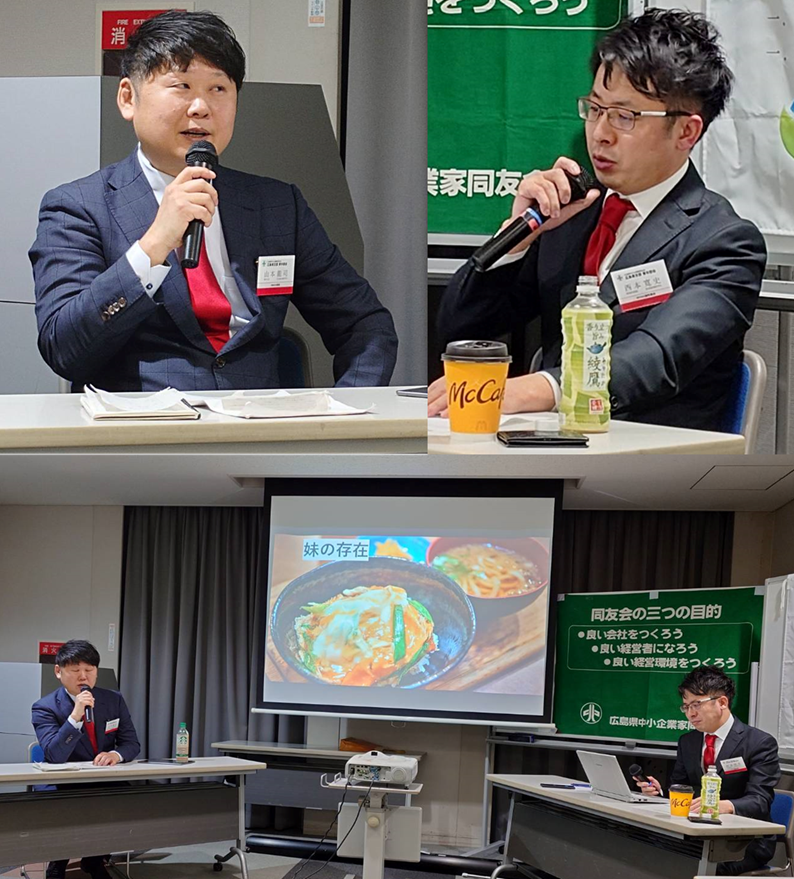 俺がこの店を受け継ぐ・・・・、同友会のみならず広島県でもその名が知れるうどん家「栄家」。入会してたった1年で卒業してしまう山本龍司氏の最初で最後の青年部での報告会。人気店故の苦悩と事業承継後の家族との付き合い方を語り、特別ゲストの妹さんの経営者・山本龍司に対する思いも語ってもらいます。
