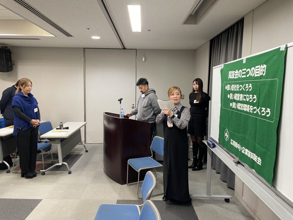 PR例会では16名の新会員さんにPRしていただき、今後の同友会活動、会社経営に