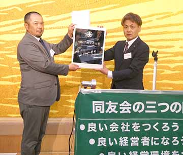 審査委員長の水ノ上支部長から賞状と盾の授与をされた近藤氏は、「大賞をいただき、嬉しく思います。今回の発表に向け、地区の皆さんにも助けていただき、僕自身も成長を実感することができました。引き続きご指導をお願いします」と、およそ150人の参加者に感想を述べました。