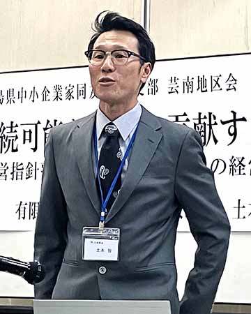 今期最後の芸南地区例会では、『持続可能な未来に貢献する!~経営指針塾で生まれ変わった私の経営理念~』と題し、(有)土本商会 代表取締役 土本智氏に経営体験報告と経営指針書の発表をして頂きました。