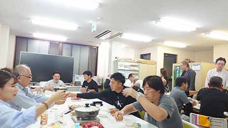 この例会は本地区会では毎年秋の恒例行事となっており、17時30分から集まれる人は集合して、自分たちで道具を持ち寄り、費用をかけないように材料の買い出し調理から自分たちでおこなって、すき焼きを堪能します。