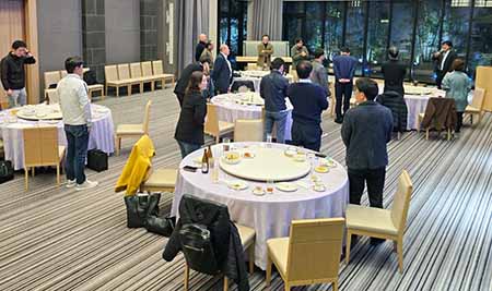 普段の会場とは違い、結婚式場のアルジェントさんでの忘年例会となりました。忘年例会といっても単なる打ち上げではなく、E地区の今年の振り返りをしつつ、来年の地区会の発展に力を合わせることを再 確認する例会でした。E地区は今期から新生役員会として地区会長の石川さん体制となりました。