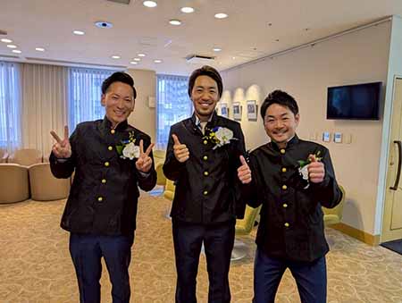 その後、同会場にて尾道支部青年部会 卒業式が開催されました。(有)大名 花本 隆資 先輩、( 株) 日章自動車 葛籠 雅明 先輩、( 株) ハイマート 佐藤 敬祐 先輩の3 名が卒業されました。お三方とも共通してお話されていたのは、今ある青年部活動は有限だということです。先輩方が与えてくださった風土を次は我々が紡いでいけるように、これからも感謝を忘れずに日々精進していきたいと思います。