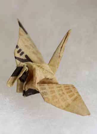 小学校を卒業しても、たびたび小学校や先生の家へ集まりました。「団結の会」の約束があったので、先生の家に行った日も、必ず禎ちゃんのお見舞いに行きました。8月に病院に行った時、禎ちゃんの手足に紫色の斑点がいっぱいできていました。私がそれに目をやると、禎ちゃんは手足を布団の中に隠すのです。その頃、病室の窓枠や、ベッドの周りには、小さい折り鶴がいっぱいぶらさげてありました。禎ちゃんは「なかなか病気が治らんけぇ、病気が治るまで折るんじゃ」「はよう中学校へ行かんと勉強が遅れるけえ」と薬のセロハン紙や包装紙を小さく切った紙で鶴を折りながら、私に中学校の様子を何度も聞くのです。私は、禎ちゃんはもう中学校に行けないということを知っていました。無心に鶴を折る禎ちゃんがかわいそうでなりませんでした。