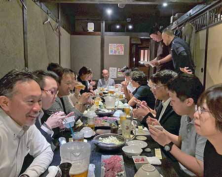 J地区5月例会は、初の試み「~つどい~」を開催しました。~つどい~とは、酒場で始まりお互いの経営近況・プライベートの悩み事を話し合い、深掘り人を決めてテーブル討論をしていく趣旨です。また年3回を予定しており、各会員とオブザーバー参加者との親睦を図り、会員数増強に繋げていく目的も含めております。