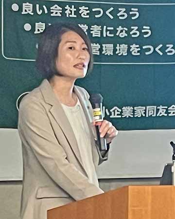 父親との対立を経て徹底的に話し合い、お互い納得して承継を決意。その後、同友会で全国の経営者と出会い、多くの悩みと正面から向き合い続ける中で、自身の欲求や弱さを認め、「強くなりたい。何が来てもブレない私になりたい。強くて、賢くて、社員さんと協力していけるリーダーになりたい」と自身の信念と、今の思いを素直でまっすぐに伝える発表となりました。