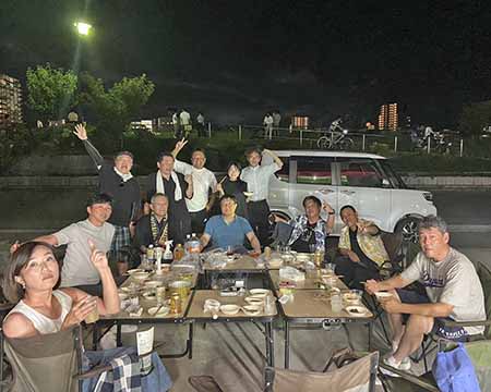 打ち上げ花火が夜空を彩る中、バーベキューを囲んで経営仲間の皆さまと語り合う時間は、まさに夏の醍醐味でした。日頃はそれぞれの現場で忙しくしている中、こうしてゆったりと過ごしながら、お互いの近況や課題を共有できたことは、とても貴重なひとときでした。