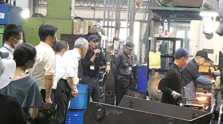 8月5日(火)、県立広島特別支援学校の先生と行く企業訪問バスツアーを開催し、会員企業2社を見学しました。参加人数は特別支援学校30名、会員11名、事務局1名の合計42名でした。