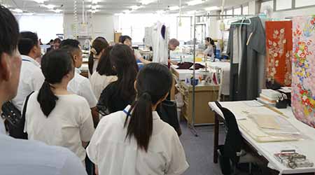 1社目の(株)勝矢和裁 は 着物の縫製や仕立てを中心に、和裁技能士の育成にも力を入れている企業です。作業所では、着物生地を活用した小物づくりやリメイクの作業が行われていました。女性が中心となり働いており、支援スタッフのサポートも手厚いことが特徴でした。