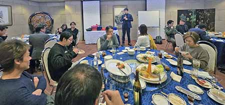 12月9日、又来軒にて、E地区忘年例会を開催しました。石川地区会長体制として最後の12月例会となり、この約二年間の歩みを振り返る良い節目となりました。今回は、今年体験発表をいただいた江見さん、加藤さん、高橋さん、松枝さんにもご登壇いただき、「発表後のその後」を率直に語っていただきました。