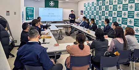 12月例会は、現地区会長の坂本氏と次期地区会長の原田氏による指針検討ミーティングが開催されました。坂本氏は「会員一人ひとりの声を次期会長へ届けたい」との思いから、3つの目的の一つ『よい会社をつくろう』に焦点を当てた場となりました。それに応える形で原田氏からは、現在の同友会への率直な疑問と、次期に向けた熱いビジョンが語られました。