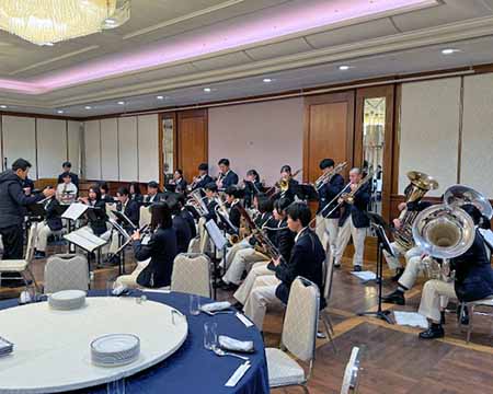 司会進行のもと、冒頭では呉港高等学校ブラスバンド部による力強くも爽やかな演奏が披露され、会場は一気に華やぎ、新年への期待感が高まりました。