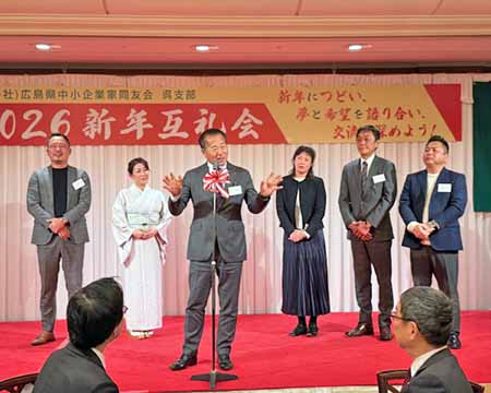 (一社)広島県中小企業家同友会・呉支部は、1月24日、「新年互礼会」を呉阪急ホテルにて開催しました。当日は多くの会員および来賓が一堂に会し、新たな一年の幕開けを祝うとともに、地域の未来を語り合い、強い結束を確認する熱気あふれる会となりました。