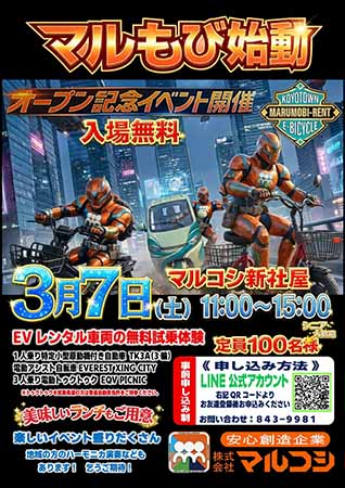 なお新事業のEV事業、EVサブスクshop「マルもび」のオープンニングイベントが3月7日に開催されました。