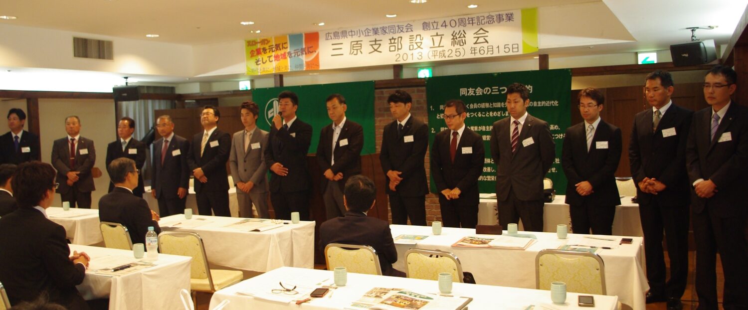 2013年、広島同友会40周年の年に、㈱アイテラサポートの鈴木章氏が初代支部長として三原支部は誕生しました。会員数は61名でした。